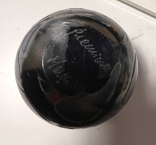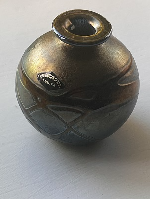 Its in good condition although it does have several air bubbles, a couple near the glass surface. It measures 18cms in height with rim diameter of 12cms, is cylinder shaped and decorated with light coloured splashes within blue glass. Smooth worn polished base.